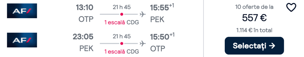 ZBOR: București -> Beijing, Preț dus-întors 557€/pers