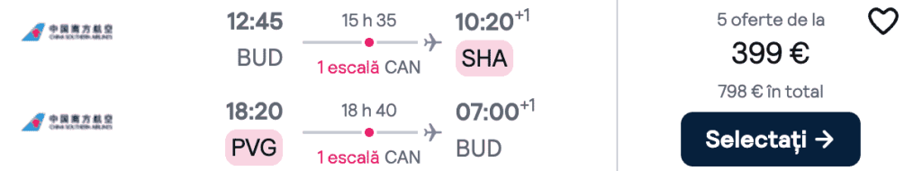 ZBOR: Budapesta -> Shanghai, Preț dus-întors 399€/pers