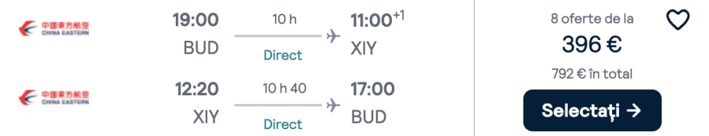 ZBOR: Budapesta -> Xi‘an, Preț dus-întors 396€/pers