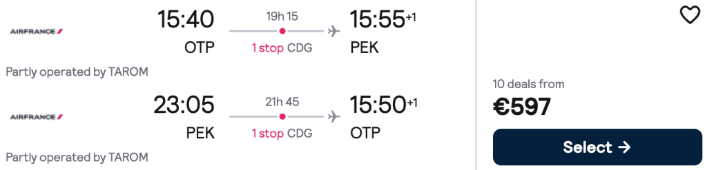 ZBOR: București -> Beijing, Preț dus-întors 597€/pers, 15-29 Iun 2026
