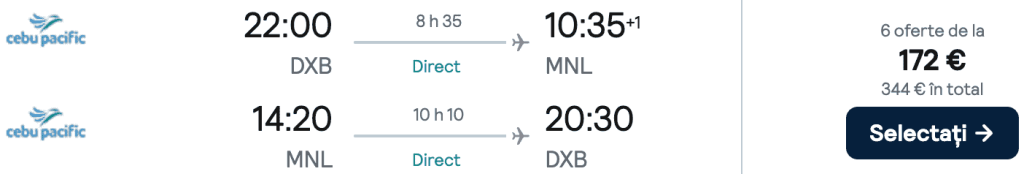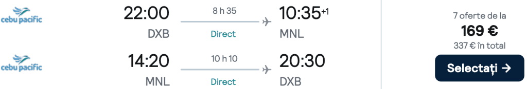 ZBOR 2: Dubai -> Manila, Preț dus-întors 169€/pers, 4-18 Mar 2026
