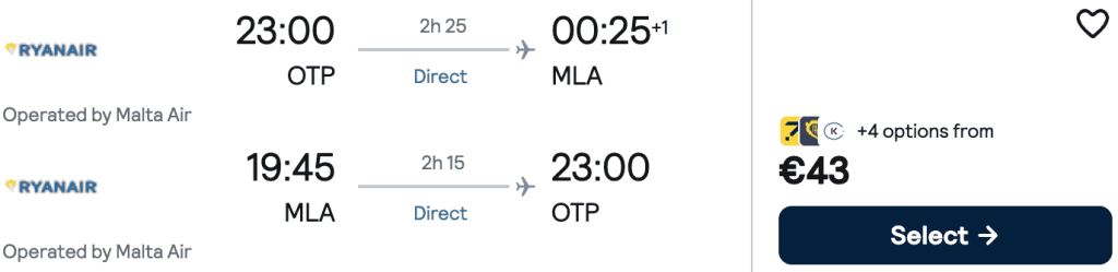 ZBOR: București -> Malta, Preț dus-întors 43€/pers, 3-9 Mai 2026