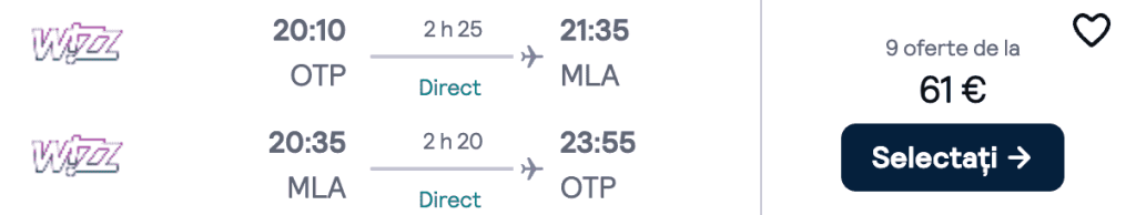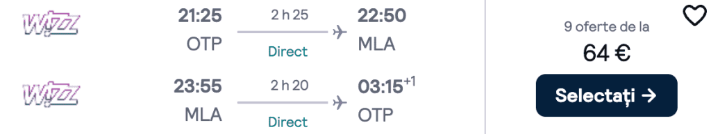 ZBOR: București -> Malta, Preț dus-întors 61€/pers