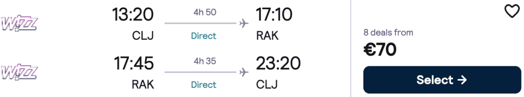 ZBOR: Cluj -> Marrakech, Preț dus-întors 70€/pers, 10-17 Dec 2026