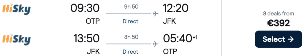 ZBOR: București -> New York, Preț dus-întors 392€/pers