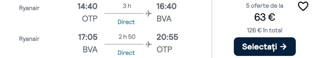 ZBOR: București -> Paris, Preț dus-întors 63€/pers