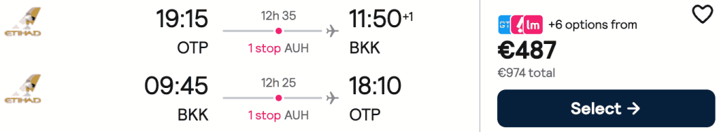 ZBOR: București -> Bangkok, Preț dus-întors 487€/pers, 28 Sep-12 Oct 2026
