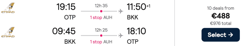 ZBOR: București -> Bangkok, Preț dus-întors 488€/pers, 7-23 Sep 2026