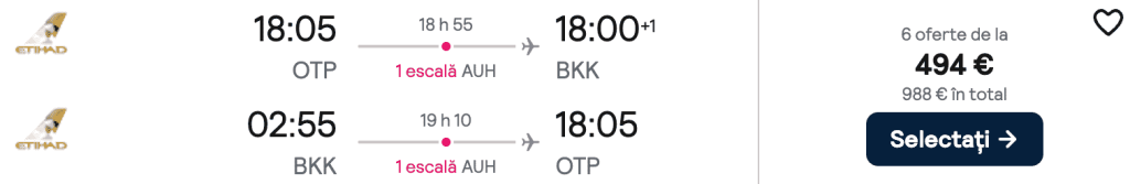ZBOR: București -> Bangkok, Preț dus-întors 494€/pers, 18 Mar-1 Apr 2026