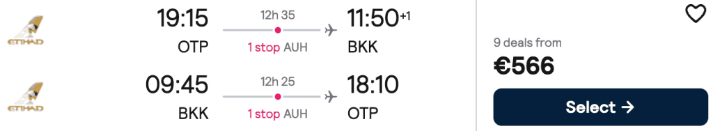 ZBOR: București -> Bangkok, Preț dus-întors 566€/pers, 21-30 Sep 2026