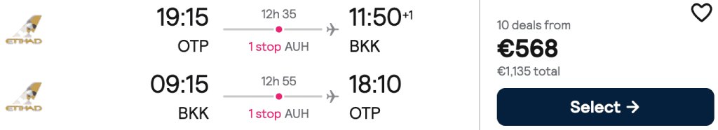 ZBOR: București -> Bangkok, Preț dus-întors 568€/pers, 28 Sep-12 Oct 2026