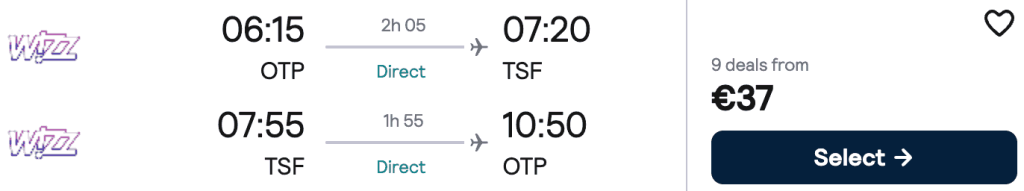 ZBOR: București -> Veneția, Preț dus-întors 37€/pers, 23-28 Apr 2026