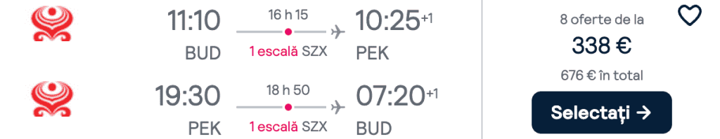 ZBOR: Budapesta -> Beijing, Preț dus-întors 338€/pers