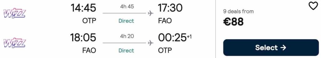 ZBOR: București -> Faro, Preț dus-întors 88€/pers, 19-26 Mai 2026