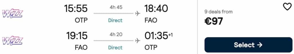 ZBOR: București -> Faro, Preț dus-întors 97€/pers, 11-18 Iun 2026