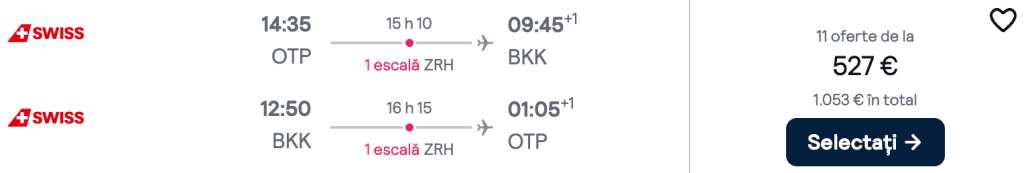 ZBOR: București -> Bangkok, Preț dus-întors 527€/pers