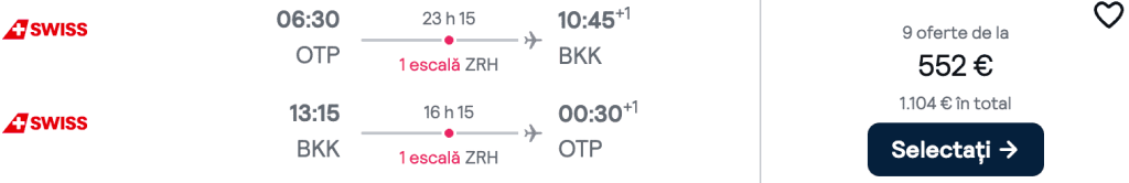 ZBOR: București -> Bangkok, Preț dus-întors 552€/pers