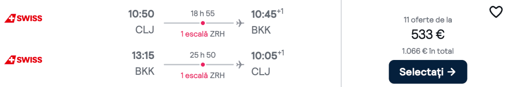 ZBOR: Cluj -> Bangkok, Preț dus-întors 533€/pers