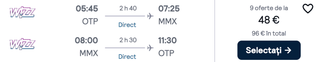 ZBOR: București -> Malmö, Preț dus-întors 48€/pers, 26-30 Mai 2025